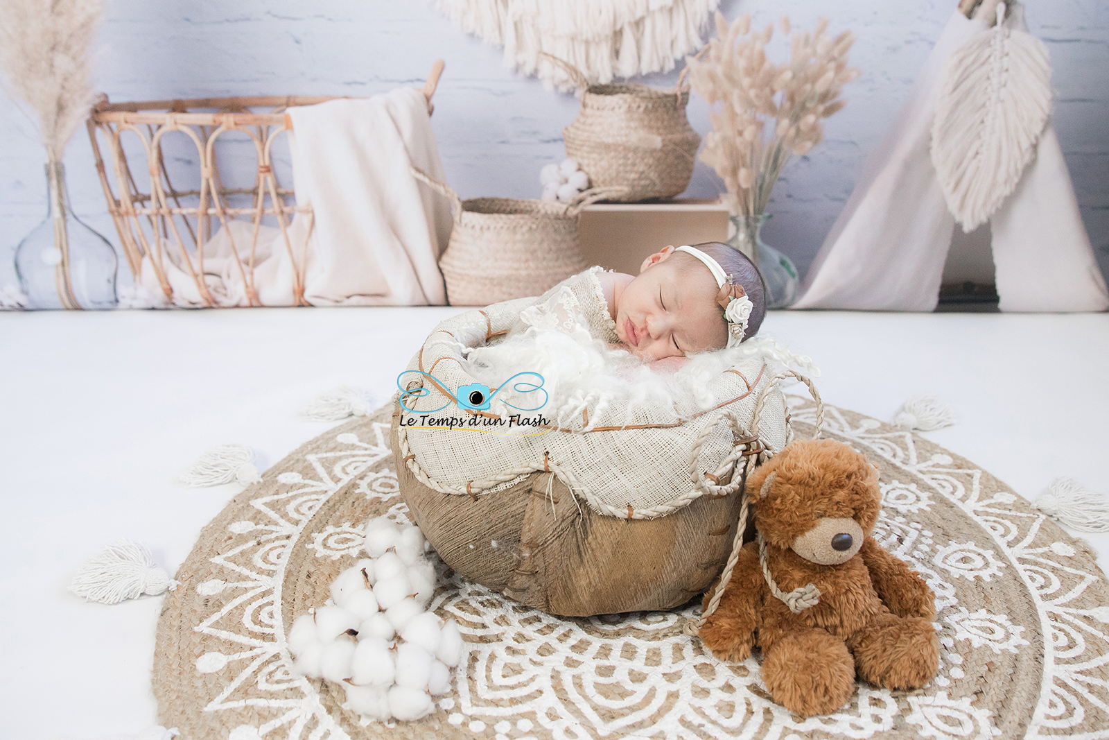 De nombreux accessoires, créés spécifiquement pour les shooting Nouveau-né, sont disponibles au studio (tenues, couvertures, fonds de studio, contenants..).
